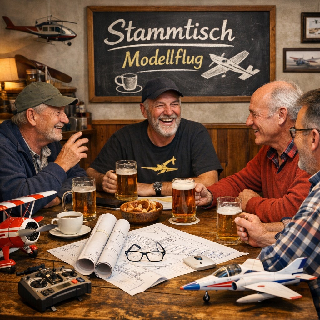 Der Stammtisch bietet eine ideale Gelegenheit, andere Mitglieder kennenzulernen, Fragen zu stellen und sich über aktuelle Themen rund um den Modellflug auszutauschen.
